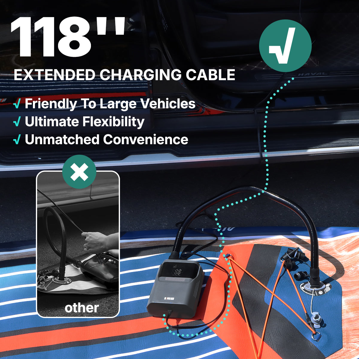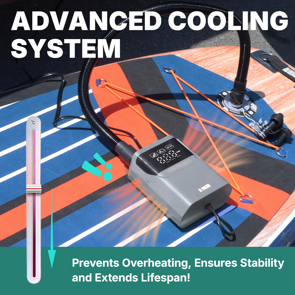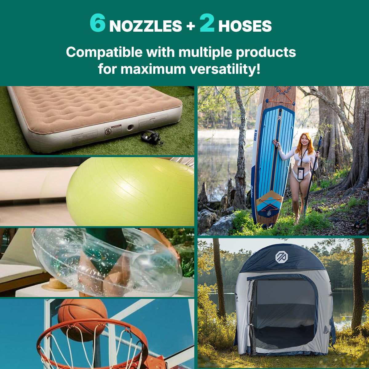 It handles both low- and high-pressure items, with up to 50 PSI for SUPs, tires, tents, and more.