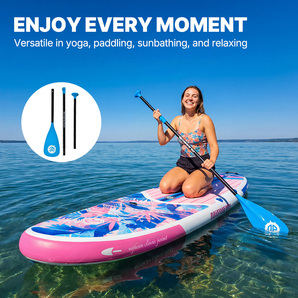 The Niphean inflatable paddle board is adaptable to different water environments, including lakes, rivers, and the ocean. It's a multi-functional board suitable for activities such as yoga, surfing, fishing, exploring, and traveling.