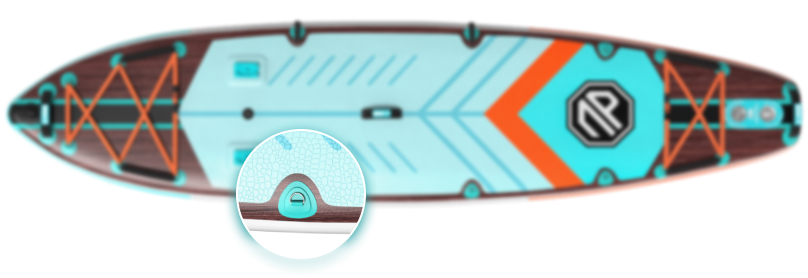 Equipped with a waterproof digital pressure gauge, our paddleboard's dual-port design (air valve + gauge port) ensures real-time pressure monitoring for enhanced safety and precise control.