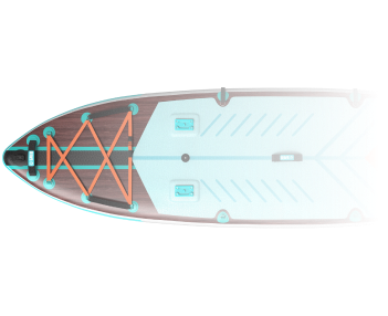 The pointed nose improves glide and tracking in all waters. A full-length carbon spine adds rigidity without weight. Adjustable bungees and side handles offer secure storage and easy reboarding—ideal for adventure and safety.
